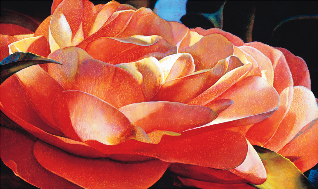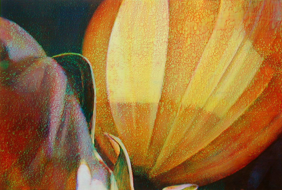 “Tim Maguire’s paintings and prints are cinematic in scale and distinctive for their rich colouration and technical skill.  Giant flowers and golden fruit resonate from ambiguous backgrounds.  The work is sumptuous, romantic. Dr Shaune Lakin, Head Curator – International Art at National Gallery of Australia argues that Maguire’s painting is “both historical and contemporary”. But these modes “do not exactly co-exist… they rub up against each other.”