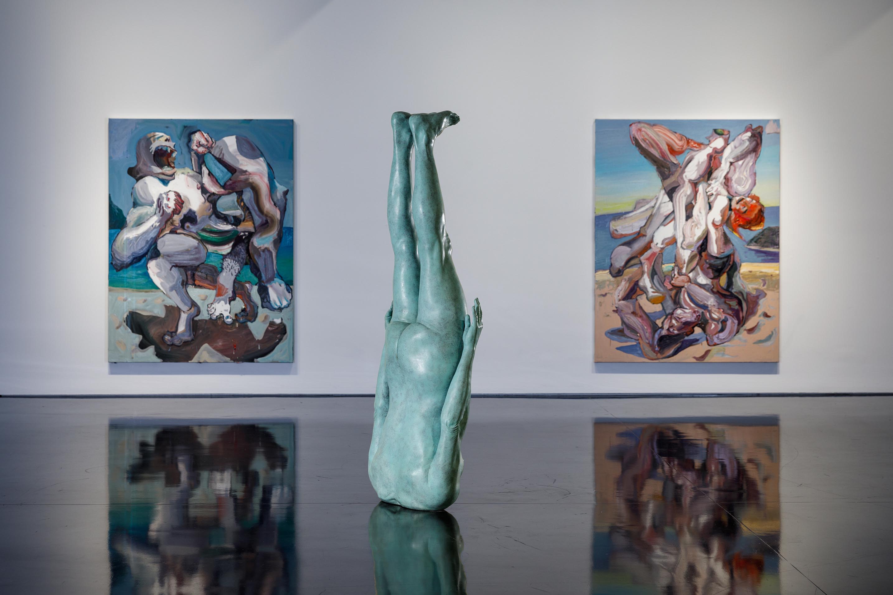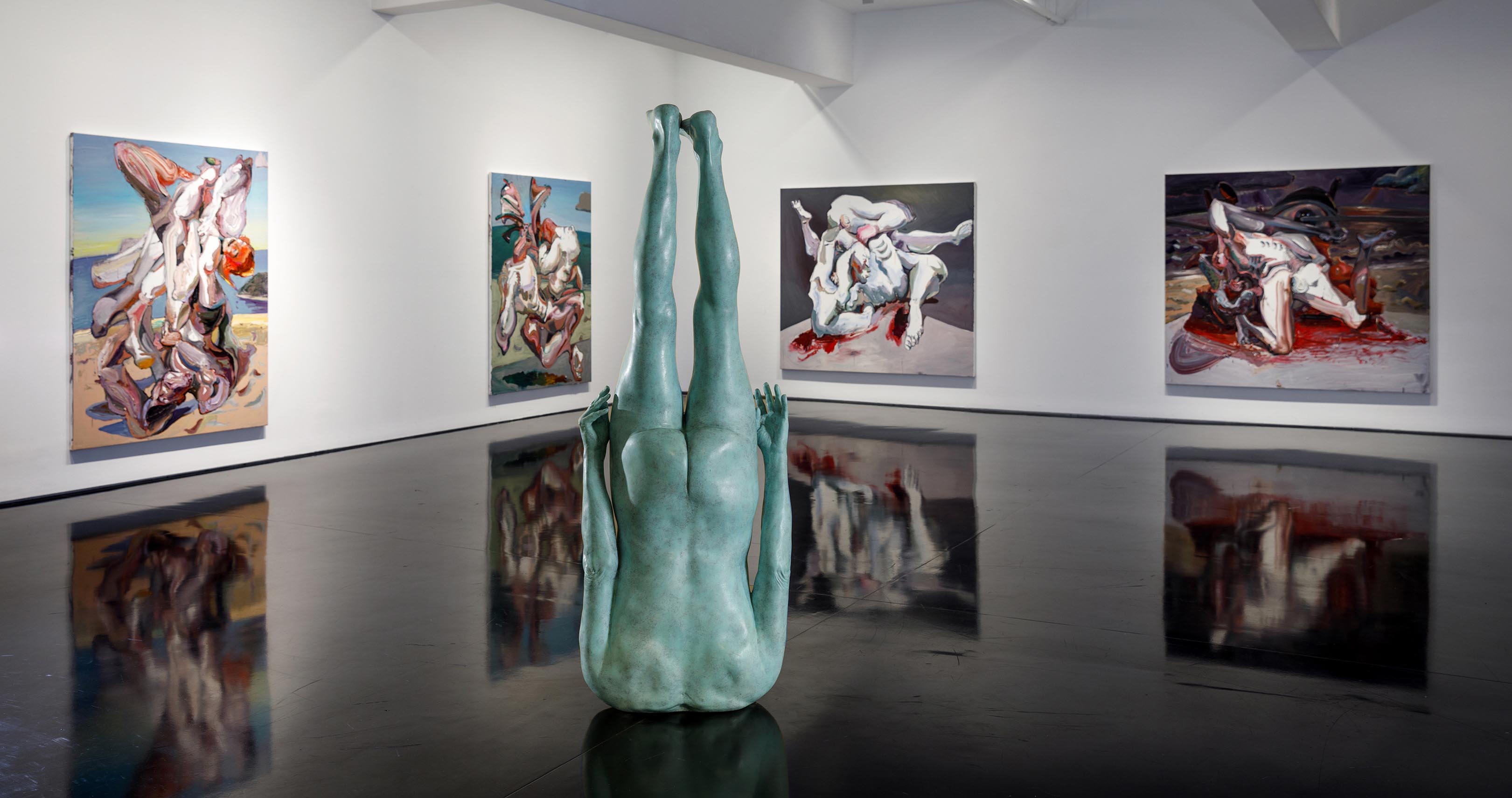 Ben Quilty ‘Freefall’ 2021, bronze, H 184 x W 69 x D 38 cm. Edition of 3 + 1 AP. From the exhibition ‘The Beach’ 2021. Installation photography by Andrew Curtis